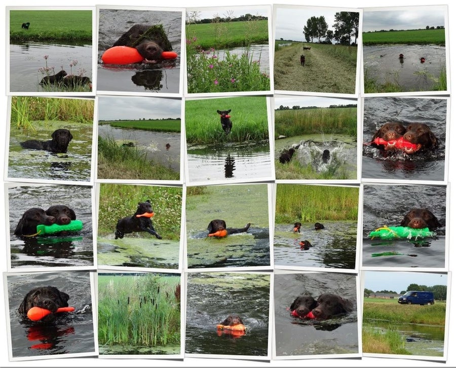 Vanmiddag met Cross en Pelle op pad geweest. Pelle heeft flink gezwommen, Cross heeft enkele baantjes getrokken maar dat is toch echt geen zwem monster.