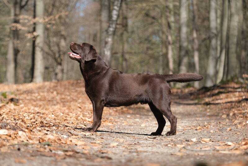 11 months old chocolate. Quality dog. Well balanced and proportions. Masculin head with gentle expression. Excellent eye color.
